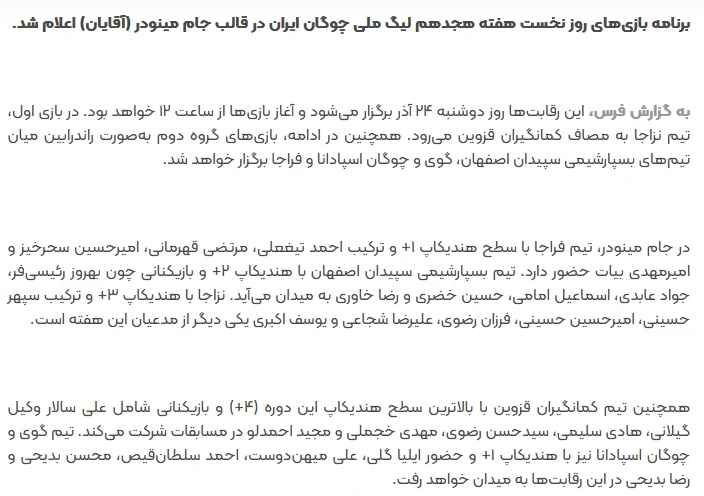ادامه لیگ ملی چوگان در هفته هجدهم