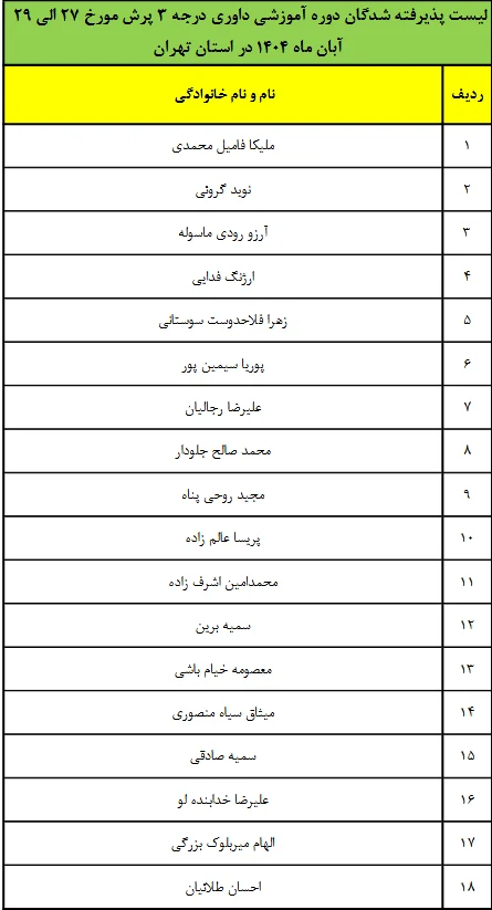 کمیته آموزش فدراسیون ، لیست اسامی پذیرفته شدگان دوره آموزشی درجه 3 پرش استان تهران را اعلام کرد.