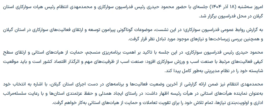 دیدار رئیس فدراسیون سوارکاری با رئیس هیأت استان گیلان