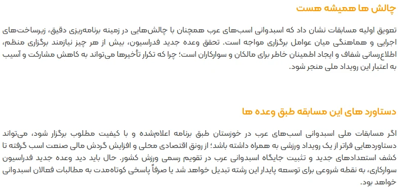 مسابقات ملی اسب دوانی اسب های عرب در خوزستان/ وعده ای از سوی فدراسیون