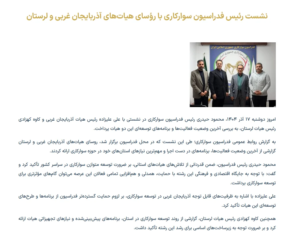 نشست رئیس فدراسیون سوارکاری با روسای هیات های آذربایجان غربی و لرستان